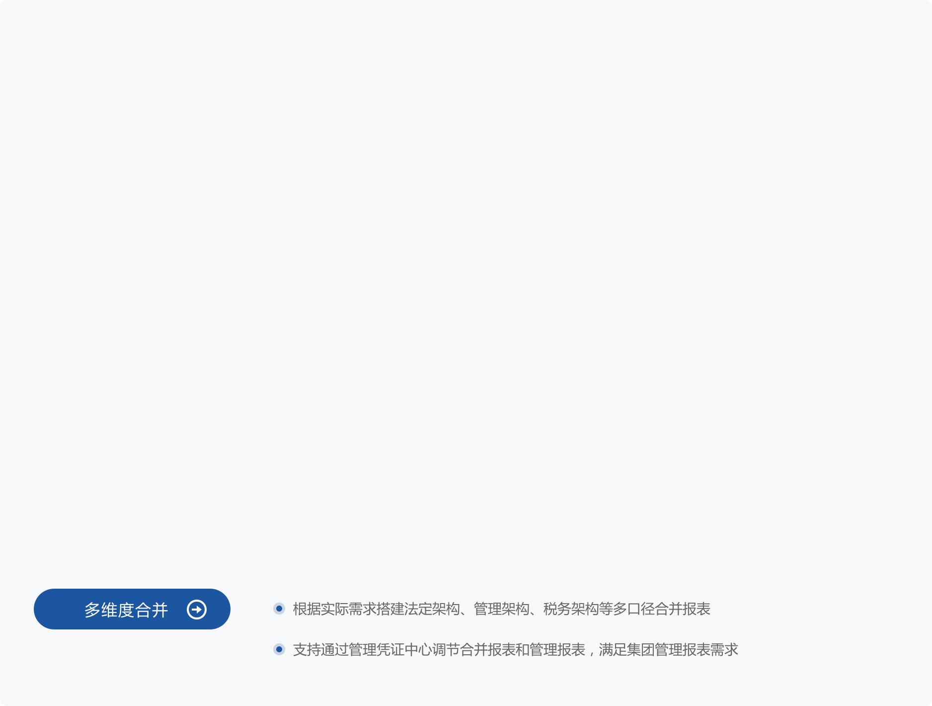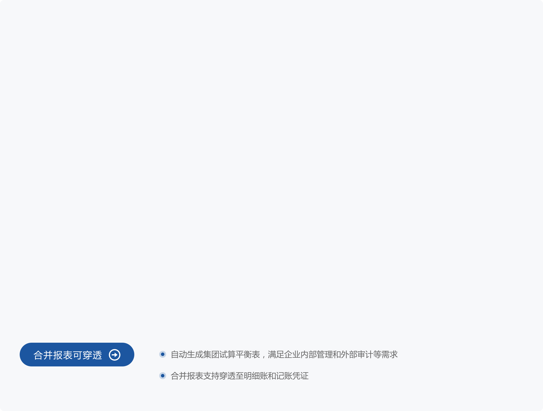 • 通过配置完成的合并抵消规则,高效出具集团合并报表和报表附注。
